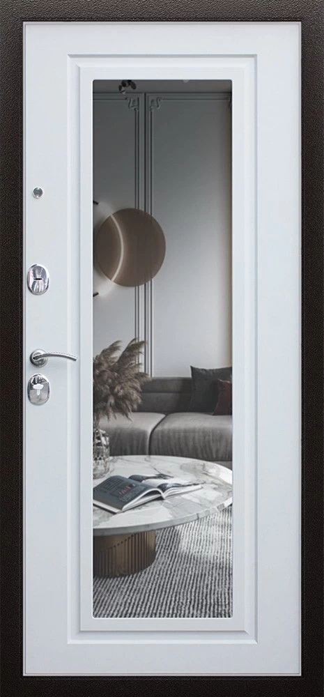 Дверь Комфорт с зеркалом среднего ценового диапазона. Стоит дверь 24 000 руб. и это отличное соотношение цены и качества. Модель подойдет для установки, например в новостройку. Прослужит долго и будет надежной защитой вашей квартиры или дома.