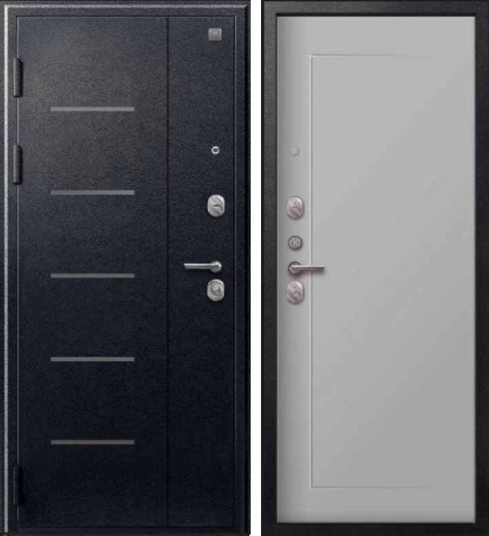 Надежная входная Дверь V-03 Черный муар - Кашемир сильвер премиум класса по цене 35 060 руб. Большая толщина стали защитит от проникновения в ваш дом, квартиру или коттедж. Используется очень качественная фурнитура: замки, цилиндры, ручки, защелки. Покрытие и отделка двери изготовлено под внимательным контролем производителя. Дверь имеет долгий срок службы и гарантию.